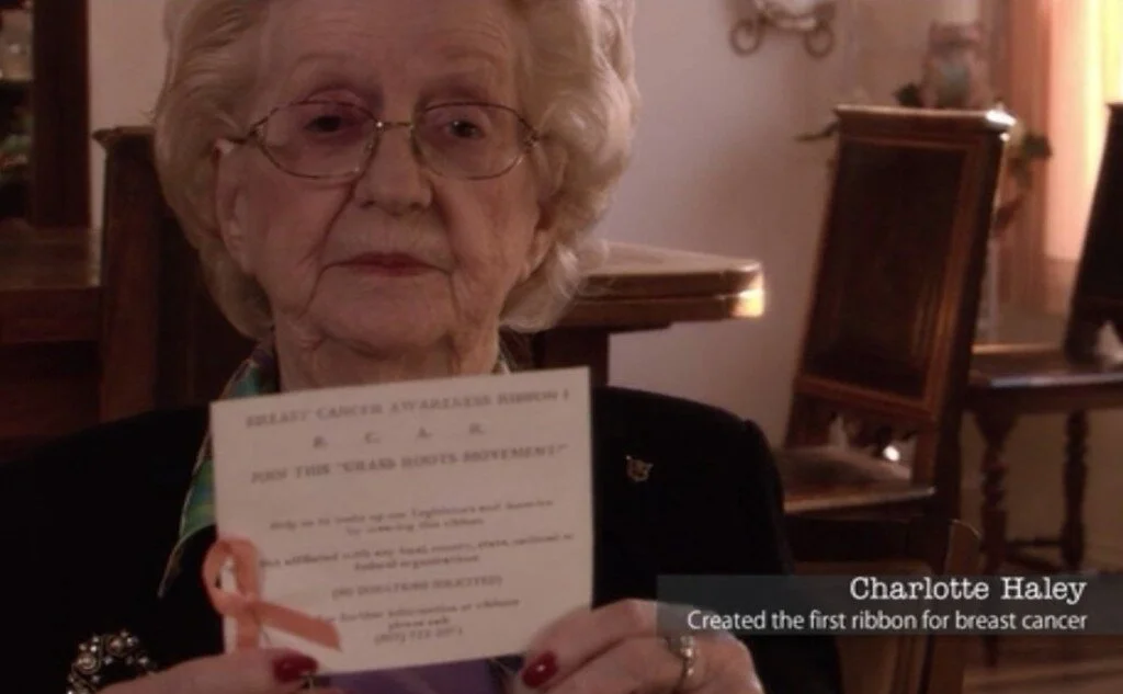 Did you know that the original ribbon campaign for breast cancer was started in the early 1990’s by a 68 year old woman named Charlotte Haley whose daughter, sister and grandmother had breast cancer? Haley made peach colored ribbons in her home and handed out thousands of these ribbons at supermarkets. Along with the ribbons was a card that read, “The National Cancer Institute annual budget is $1.8 billion, only 5 percent goes for cancer prevention. Help us wake up our legislators and America by wearing this ribbon.”