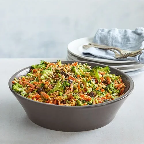 Use the Quick Prep Food Grater fitted with the coarse grating blade to grate the broccoli stem, carrots, and apples. Use the slicing blade to slice the broccoli florets.