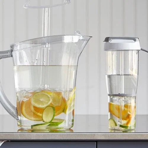 Fill the pitcher with water to the 2-qt line. Plunge to combine and then top with ice. Serve immediately or refrigerate to chill.