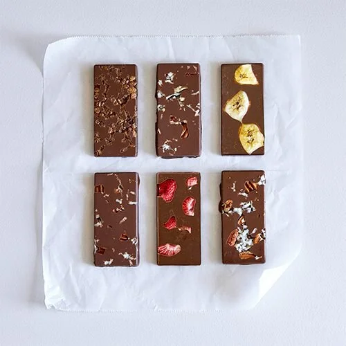 Place an even layer of add-ins into the bottom of the Snack Bar Maker wells. Pour the chocolate over the top and smooth out with Mini Mix ‘N Scraper®.